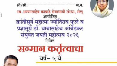 सेलू ( प्रतिनिधी ) येथील स्व. अण्णासाहेब काकडे सेवाभावी संस्थेच्या वतीने क्रांतिसूर्य महात्मा ज्योतिराव फुले…