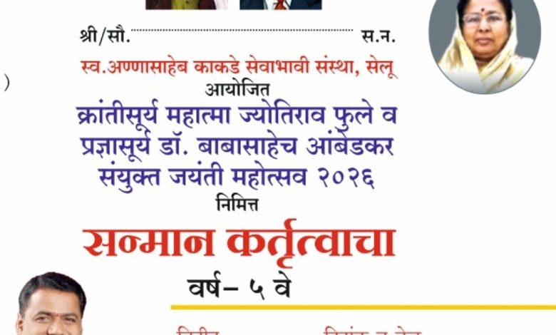 सेलूत शनिवारी ‘सन्मान कर्तृत्वाचा’ सोहळा ◾मिनाताई बोर्डीकर यांना मातृगौरव पुरस्कार