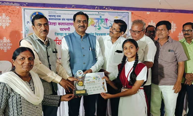 परभणी ( प्रतिनिधी ) महाराष्ट्र राज्य कलाध्यापक संघ महामंडळ,पुणे आयोजित जिल्हा व राज्यस्तरीय ऋतुरंग चित्रकला स्पर्धा संपूर्ण राज्यात भव्य स्वरूपात आयोजित करण्यात आली होती.या स्पर्धेचे जिल्हास्तरीय पारितोषिक वितरण रविवार दिनांक 21/ 9 /2025 रोजी जिल्हा परिषद कन्या प्रशाला परभणी येथे अतिशय थाटात संपन्न झाले.