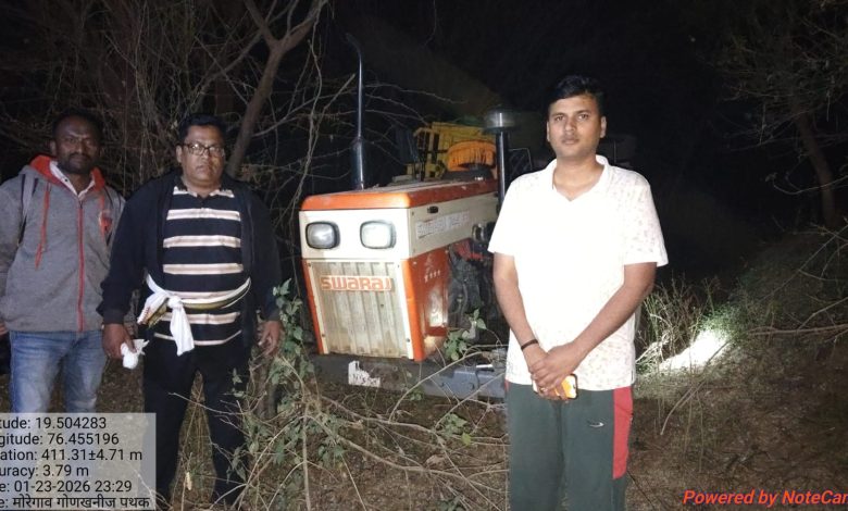 सेलू तालुक्यातील मोरेगाव येथे मध्य रात्री अंदाजे 11.30 वाजता प्रत्यक्ष नदीपात्रात जाऊन अवैध गौणखनिज वाहतूक करणारे स्वराज कंपनीचे ट्रॅक्टर व लाल रंगाची ट्रॉली जप्त करून तहसील कार्यालय सेलू येथे लावण्यात आली आहे.