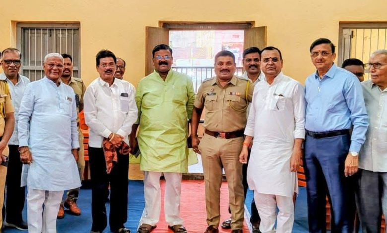सेलू ( प्रतिनिधी ) सेलू येथील नूतन विद्यालय शिक्षण संस्थेच्या नूतन विद्यालयाचे “कै.रा.बा.गिल्डा सभागृहाचे” नुकतेच नूतनीकरण करण्यात आले आहे. सेलू शहरातील मध्यवस्तीत असणाऱ्या या संभागृहाची पाहणी करतांना सेलूचे उपविभागीय पोलीस अधिकारी दीपक वाघमारे,सेलू नगरीचे नगराध्यक्ष मिलिंद सावंत,संस्थेचे अध्यक्ष डॉ एस एम लोया,संस्थेचे सहसचिव जयप्रकाश बिहाणी, संचालक नंदकिशोर बाहेती, माजी नगराध्यक्ष विनोद बोराडे, पोलीस निरीक्षक दीपक बोरसे, मुख्याध्यापक एस व्ही पाटील, पत्रकार डॉ विलास मोरे, बबलू मंडलिक यांनी भेट देऊन पाहणी केली.