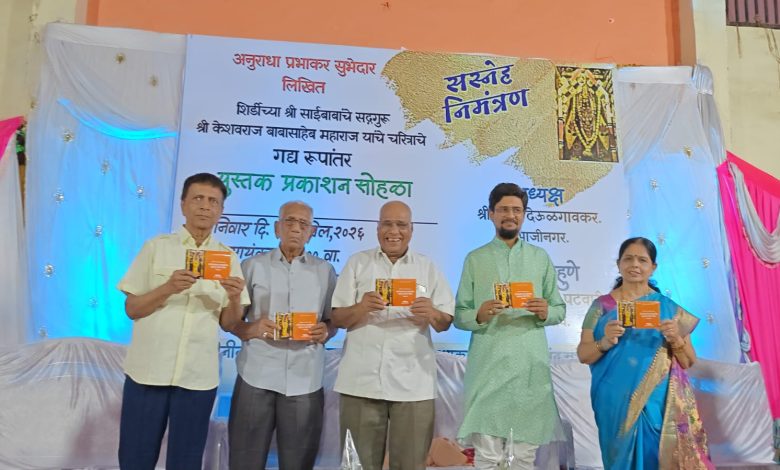सेलू दि १२(प्रतिनिधी) शिर्डीच्या साईबाबांचे गुरू तथा शहराचे ग्रामदैवत श्री केशवराज बाबासाहेब महाराज यांच्या चरित्राचे गद्य रूपांतर पुस्तक प्रकाशन सोहळा काल दि ११ एप्रिल रोजी सायं 6 वा. श्री केशवराज बाबासाहेब महाराज मंदिरातील सभागृहात थाटात संपन्न झाला.केशवराज बाबासाहेब महाराज यांचे वंशज अनुराधा प्रभाकर सुभेदार यांनी बाबासाहेब महाराजांच्या ओवीबद्ध असलेल्या ग्रंथाचे गद्य रुपात रूपांतर केलेल्या ग्रंथ प्रकाशन यावेळी करण्यात आले.